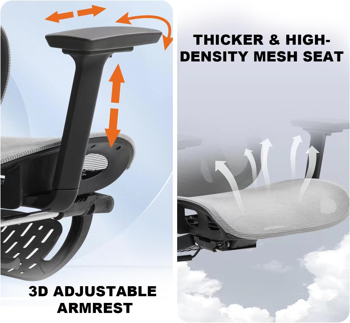 - 【Adjustable Lumbar Support and 3D Armrests】 - Ergonomic Chair equipped with an adaptive lumbar support can relieve your lower back pain, it effectively reduces the burden on the waist, improves posture; The 3D adjustable armrests covered in a soft PU material allow you to move in 3 different directions, making it easy to find the most comfortable position and reducing strain on your shoulders and wrists.